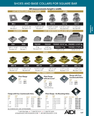 SHOES AND BASE COLLARS FOR SQUARE BAR