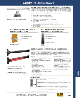DETEX PANIC EXIT DEVICE STANDARD DOOR STILE 36"