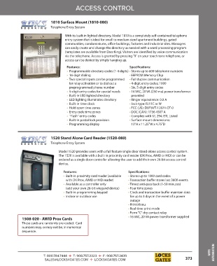 • "Flash" entry codes • Complies with UL 294; ETL Listed