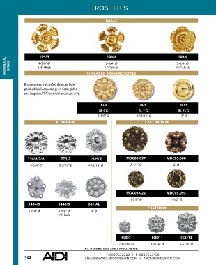 ORNAMENTAL METALS 1/4" thick THREADED BRASS ROSETTES 1/4" thick