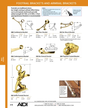 406 Contemporary Bracket 450 Bar Armrail Bracket 584 Elephant Footrail Bracket