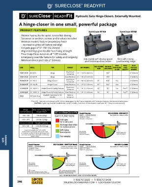 74108313T RF 108 S Hinge/Closer ½" - 1⅜" (12-35mm) 85˚ 180˚ Yes - 2" (50mm)