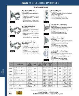 CI2054 • Load rating per gate: 2,000 lbs (900kg) Face Mount Bolt-on Steel Hinge