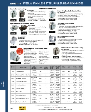 KEY FEATURES Heavy Duty Steel Roller Bearing Hinge