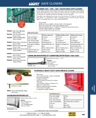 TB250W - Light Duty Adjustable Max. Gate Weight 50-125 lbs. 75-175 lbs. 150-250 lbs.