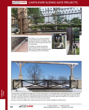 SLIDING GATE SYSTEMS This large entrance required sturdy gates with minimal visible hardware. This client decided to use DuraGates Aluminum Track Model,