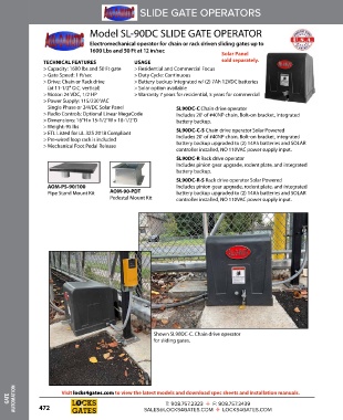 > ETL Listed for UL 325 2018 Compliant SL90DC-C-S Chain drive operator Solar Powered