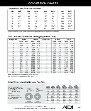 Steel Thickness Conversion Table (gauge - inch - mm)