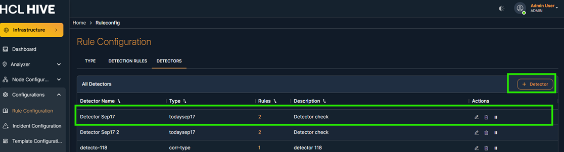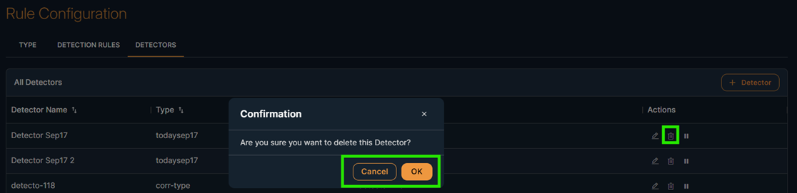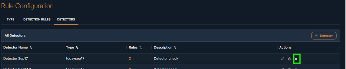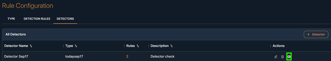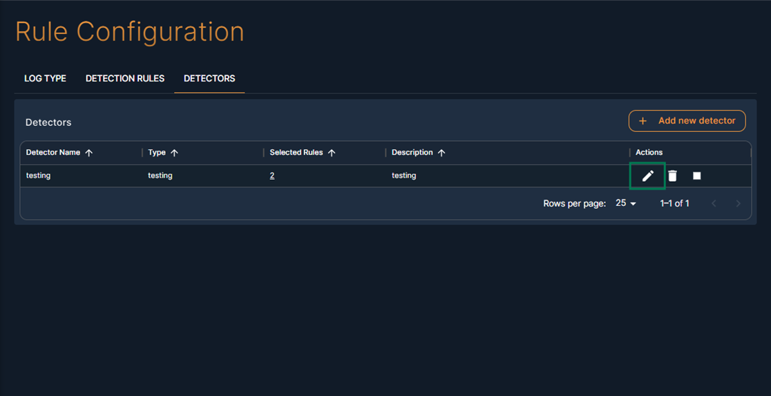 On the Detector screen, You will see the newly created detector .And in the table, you can click "Edit" or “Delete” or “view” detector