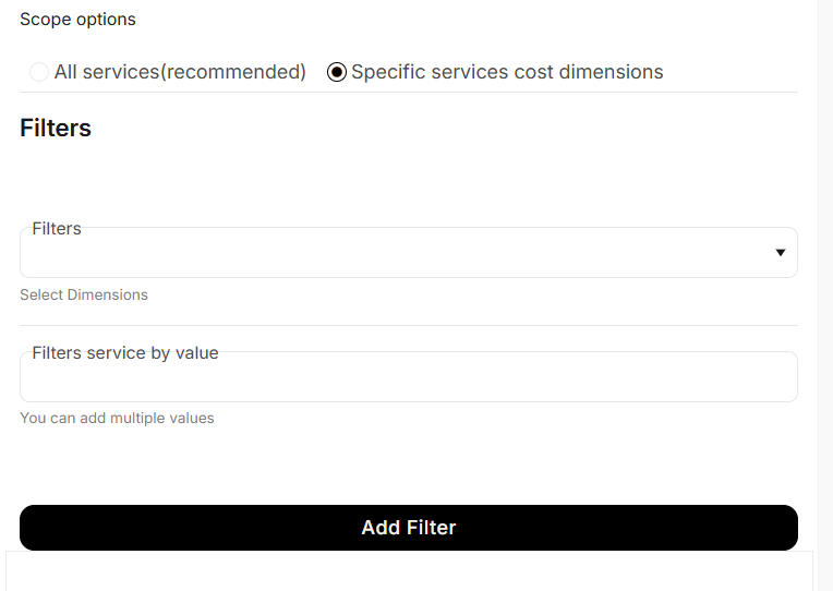 If selecting Specific Services, apply relevant filters for service-level granularity.