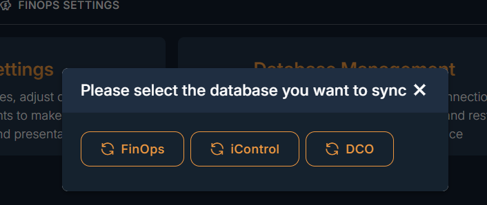 the profile menu and then on Database Management.Figure 1. Figure - Settings from Account DrawerFigure 2. Figure - Database ManagementFigure 3. Figure - Pop up to select database