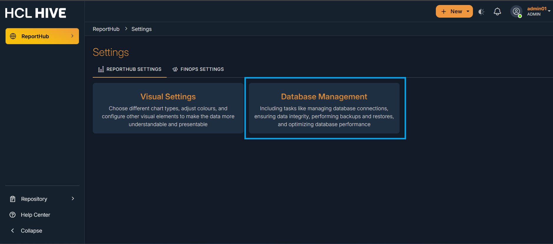 backups and restores, and optimizing database performance. Users can click on Settings from