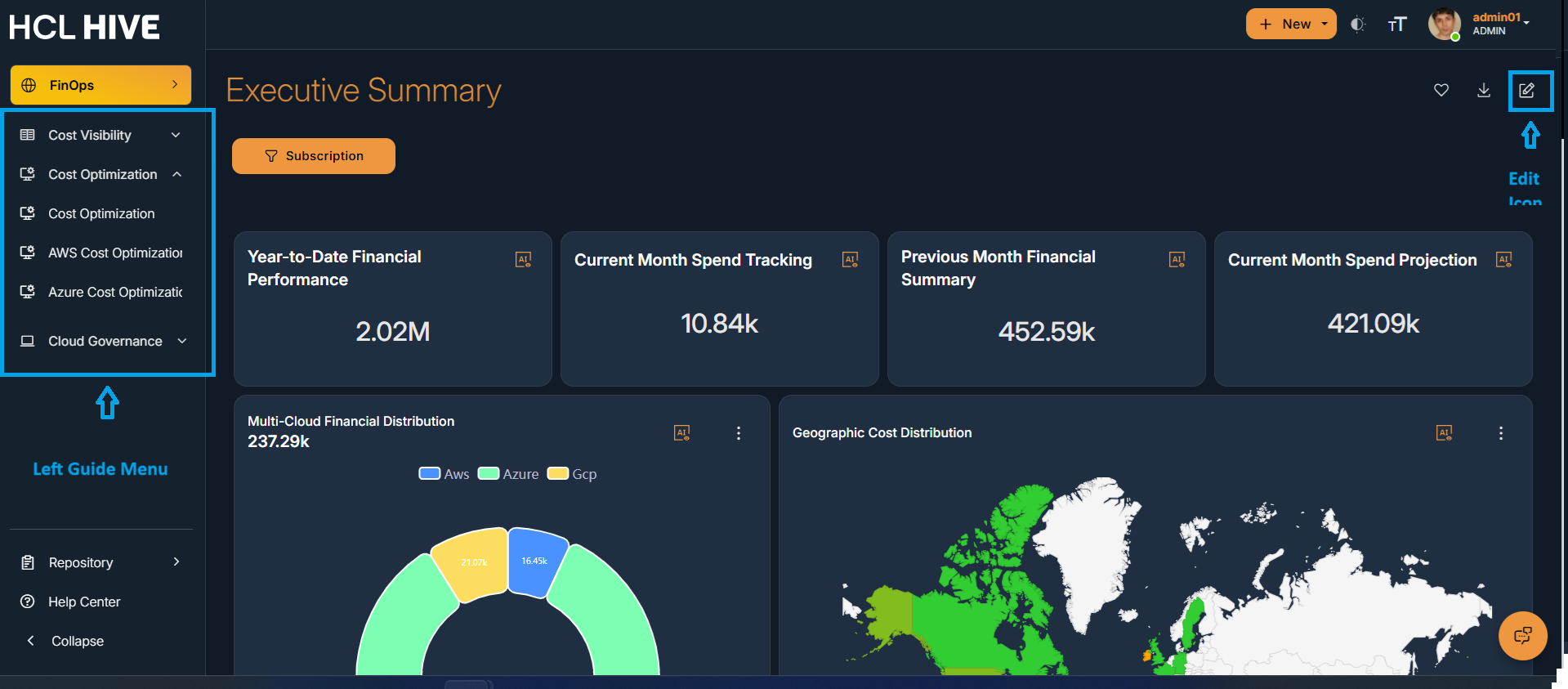 - Rearrangement of reports in the dashboard : Users need to navigate to any of the available Dashboards using the left guide menu on the home page and then click on the “Edit” icon to change the placements of reports on that particular dashboard.