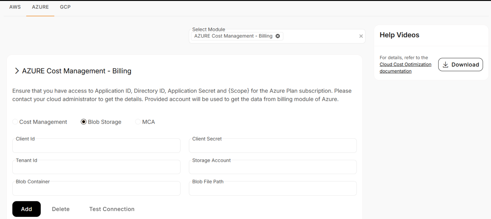 - Use Help Videos / Download for the Azure setup document.