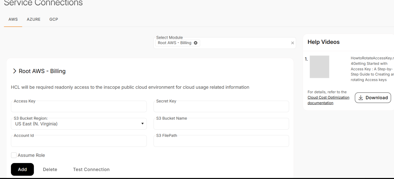 (Optional) Assume Role if your organization uses a cross-account role instead of keys.