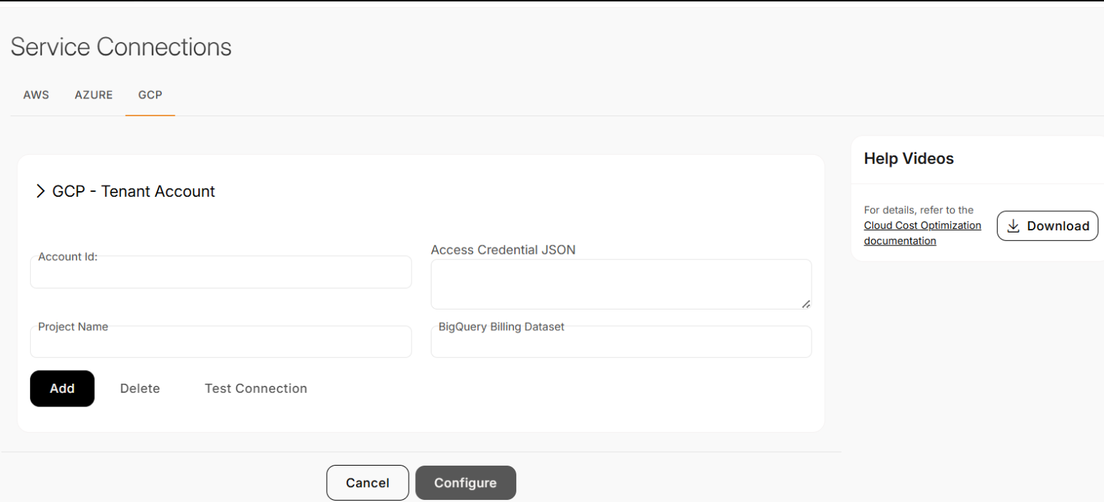Open the GCP tab (GCP – Tenant Account).