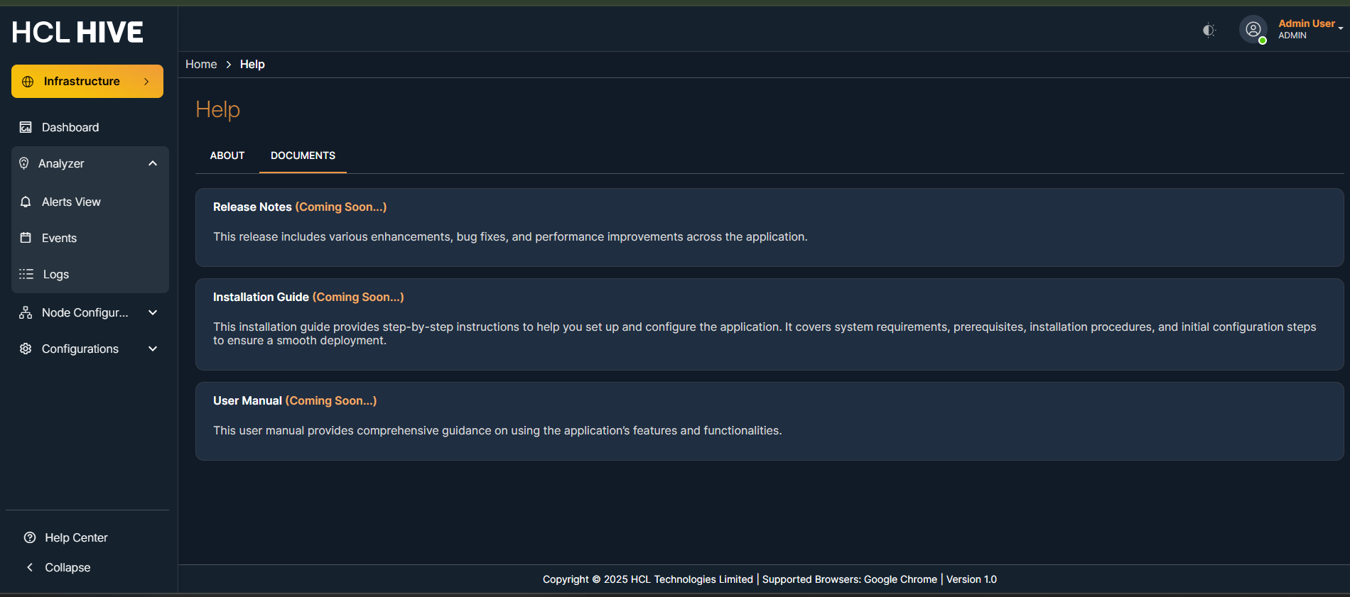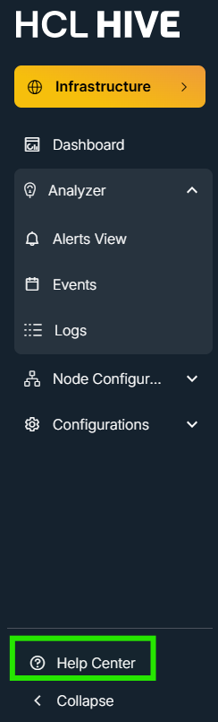 Help Center The Help Center option is available for the user to access product documentation and guide videos. It is present on the side navigation menu and user and simply click on it to access it.