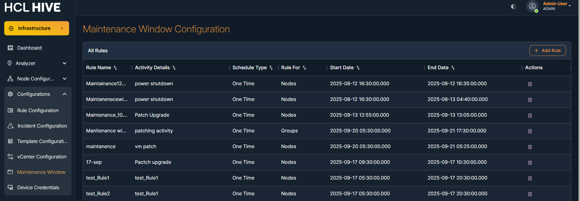 Navigation: Infrastructure → Configurations → Maintenance Window
