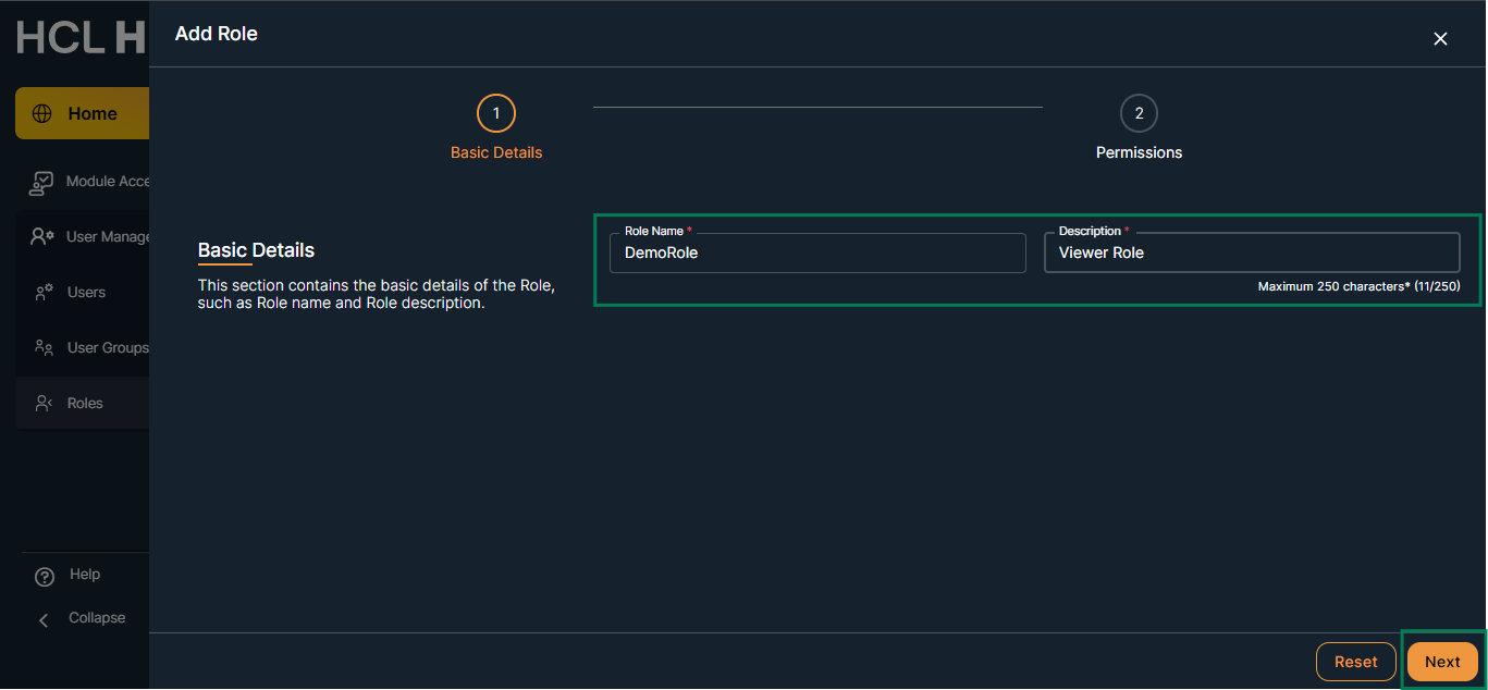 Navigation: User Management → Roles