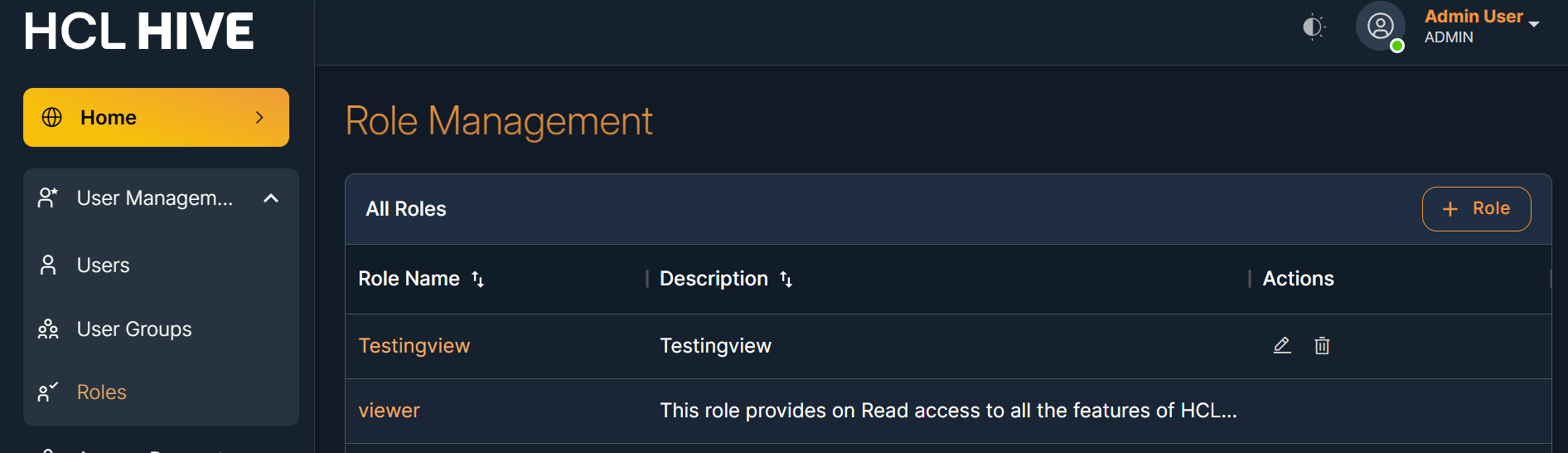 On the same screen, you can perform the "Edit" and "Delete" operations and detailed view of roles.