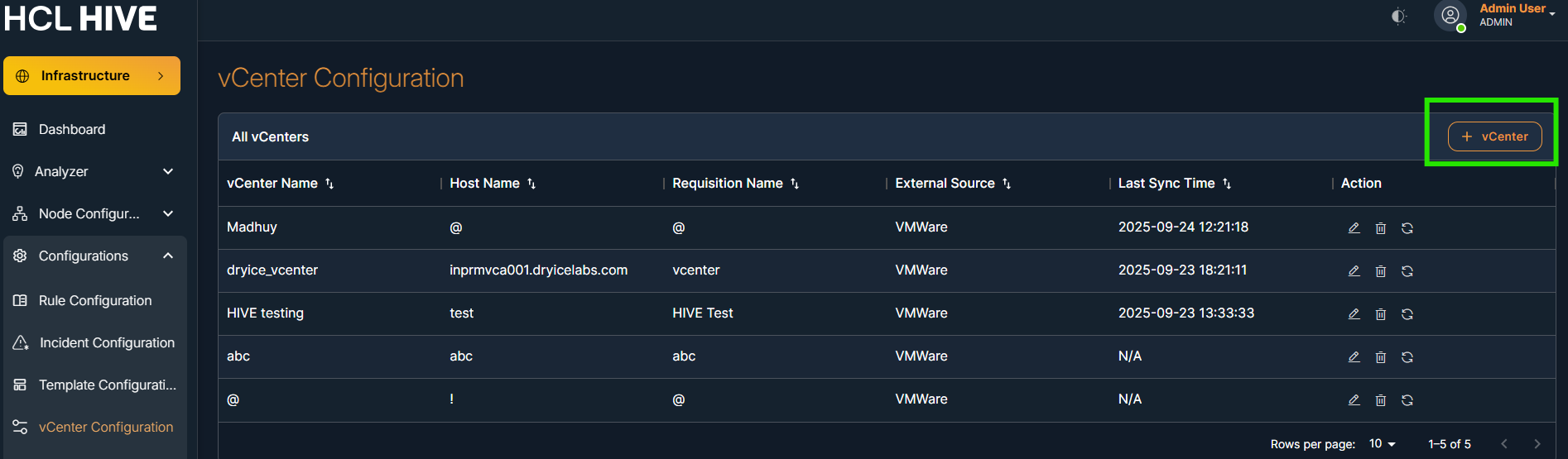 Navigation: Infrastructure → Configurations → vCenter Configuration