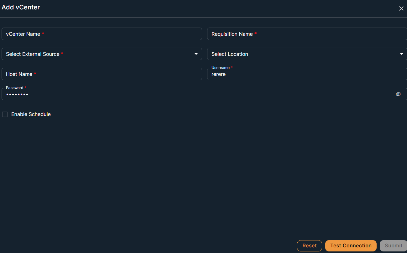| Username / Password | Credentials used to access the vCenter (typically with readonly access). |